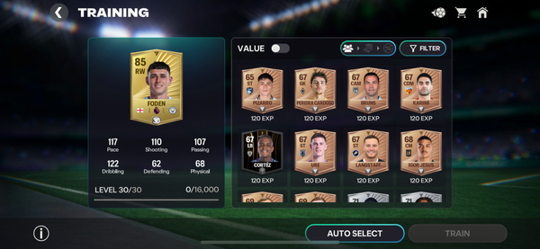 The counter for the “Player Training: train 18 players to level 30” quest in the Achievement Quest section is stuck on 16/18 for me. It was counting fine up to 16/18. Since then I’ve trained up an additional 5 players to level 30 of varying OVR ratings and none added to the counter.