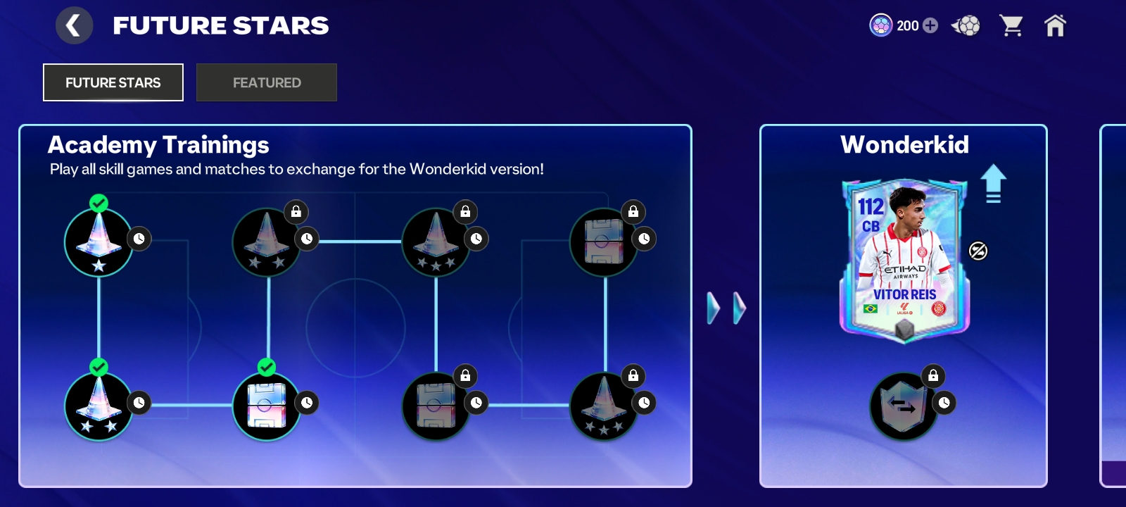 It's in the Future Stars event where in the main page I selected victor out of the three players and I completed the first three task but the rest are locked and not opening up and I am running out of time to complete the task