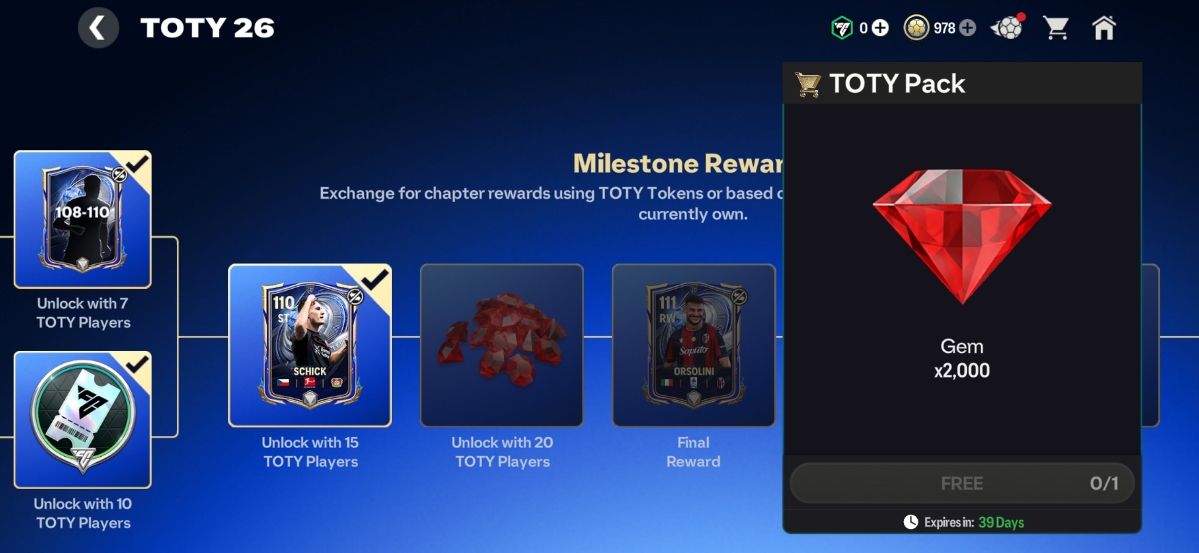I already have 23 UTOTY players but I cannot claim rewards that requires the 15 and 20 UTOTY players.