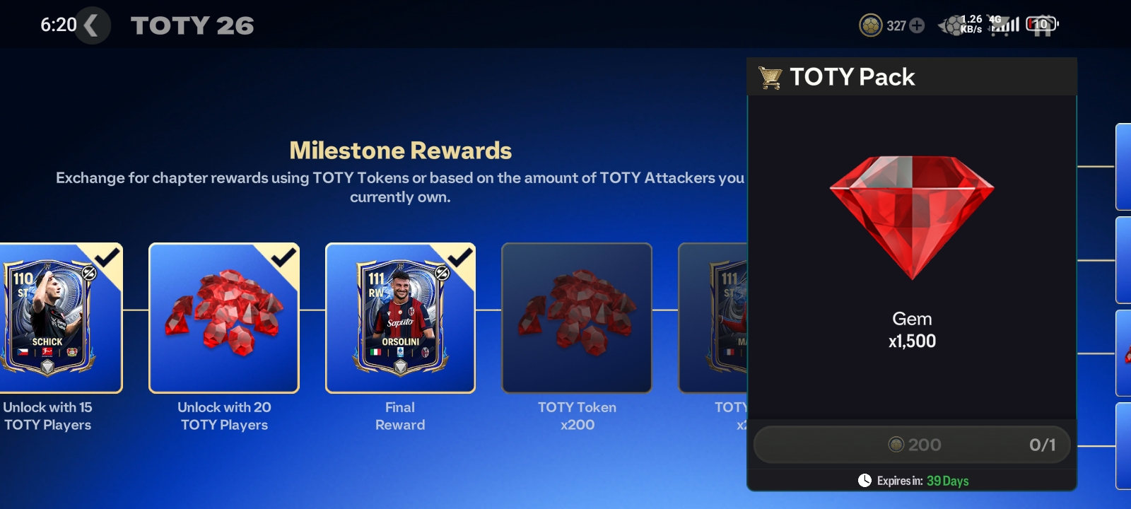 Quick note: the milestone counts eligible TOTY Attacker players you currently still own on your account. The Badge total can include players you had before, even if you’ve since used/sold them, so a badge screenshot doesn’t prove you still have 15/20+ right now.