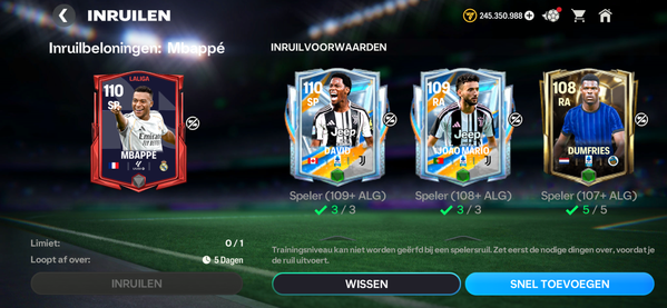 See I wanted to exchange 111 ovr mbappe from football center POTM section , as they asked the requirements players, i gave all players they asked, but I can't exchange the 111 ovr mbappe card ? Plz fix it 😭