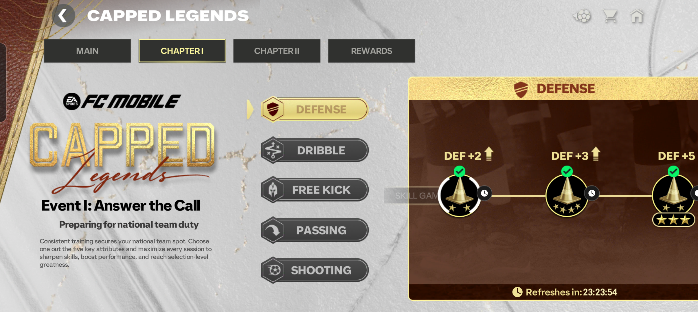 In the chapter 1 of capped legends. I couldn't switch between attributes. I have completed the defence attribute today. Then I try switch to any other attribute. Selection is not changing to different attribute.it is not allowing to switch