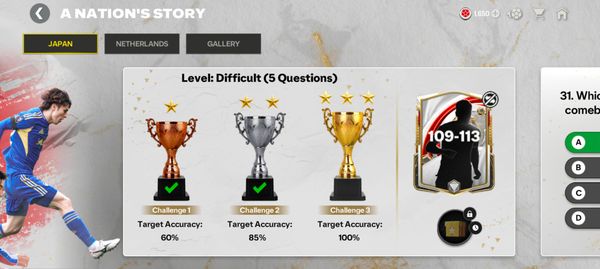 It was a third day reward with a pack of ovr 109-115, and yes i did complete all three days quiz with 100% accuracy. But i still didn't receive the reward.