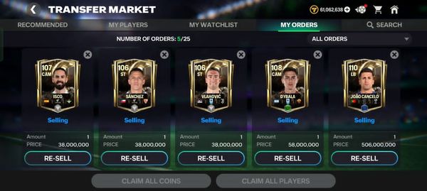 "My friend got a 108 OVR rated Joãn Cancelo , Isco , Dybala , Sanchez and Vlahovic , which is tradeble . My friend immediately sell those players on the market . Two days has passed , but my friend still hasn't got the coins from the tradeble cards. Please fix this bug. Thank you"