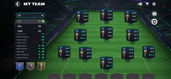 The screenshots show the composition without the activation of badges and with the activation of two badges, giving +1 OVR