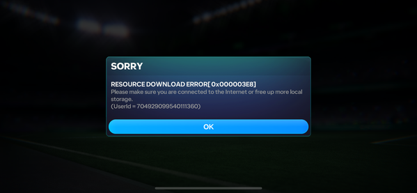 Damm Ea, my connection is still good, If I play Vsa or H2h continuously, they will be an error “RESOURCE DOWNLOAD ERROR [ 0 x000003E8 ]