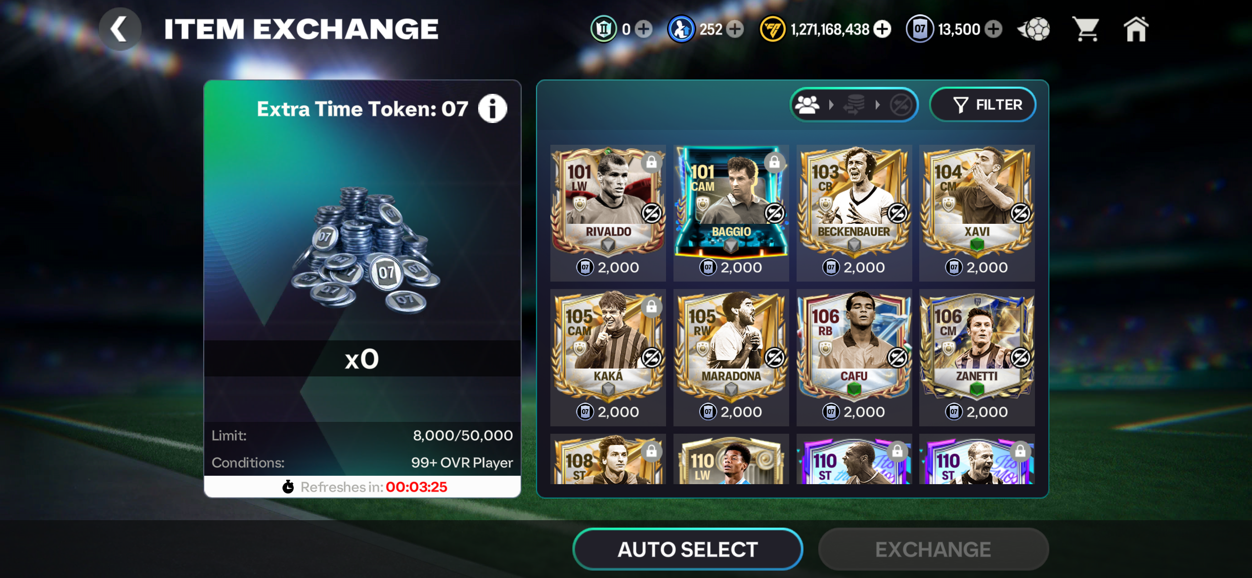 Football centre players were not showing up in the Extra Time Token 07 exchange.