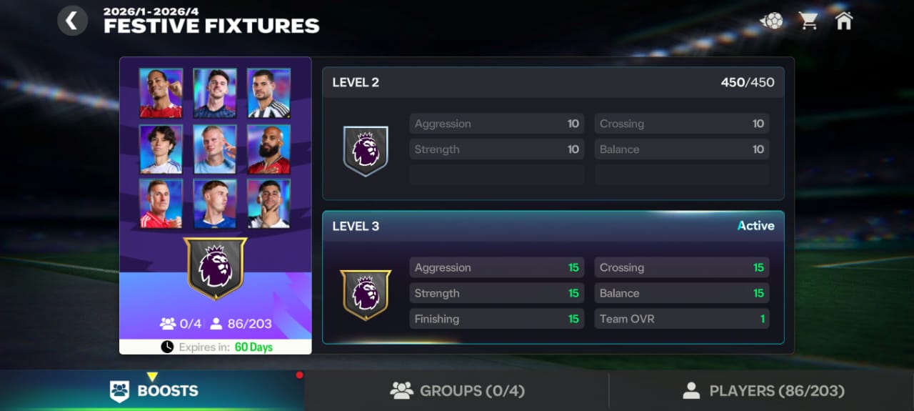 Recent DiscussionsGlorious Era Badge +1 OVR bugged? Is anyone else not getting the +1 OVR from the Glorious eras badge? Festive Fixtures Badge - +1 OVR Boost Issue Greetings! I raised the level of the Festive Fixtures badge to the third one, but it doesn't add +1 OVR. I thought it was a visual bug, I logged in, played Division Rivals, created new lineups, but...Team overall 120 problems I reached max levels of festival fixtures still 120!!!!! Performance issues on Samsung Galaxy A07 EA FC Mobile is supposed to run on the Samsung Galaxy A07, but the game suffers from constant lag and frame drops even on low settings, especially during online matches, where it becomes unplayable....This indicates poor workmanship by the developers. This indicates poor workmanship by the developers. And that's not even counting the various problems that occur while playing the game.