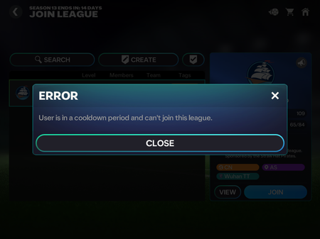1 month agoHi there — how long have you been seeing this message, and how many times have you changed leagues in the past few days? Give it at least 24h without making any further attempts.