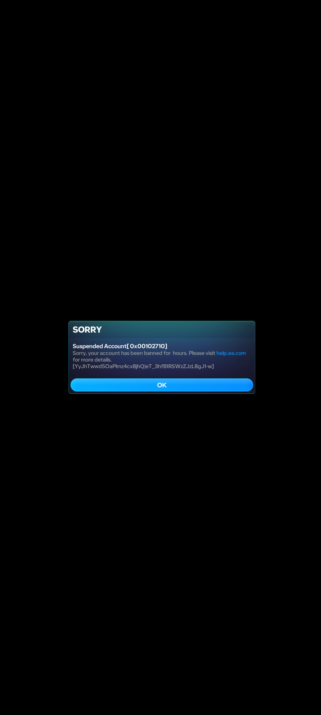 I hope you are doing well. I am writing to request a review of my EA account, which has been recently suspended with the error code 0x00102710.