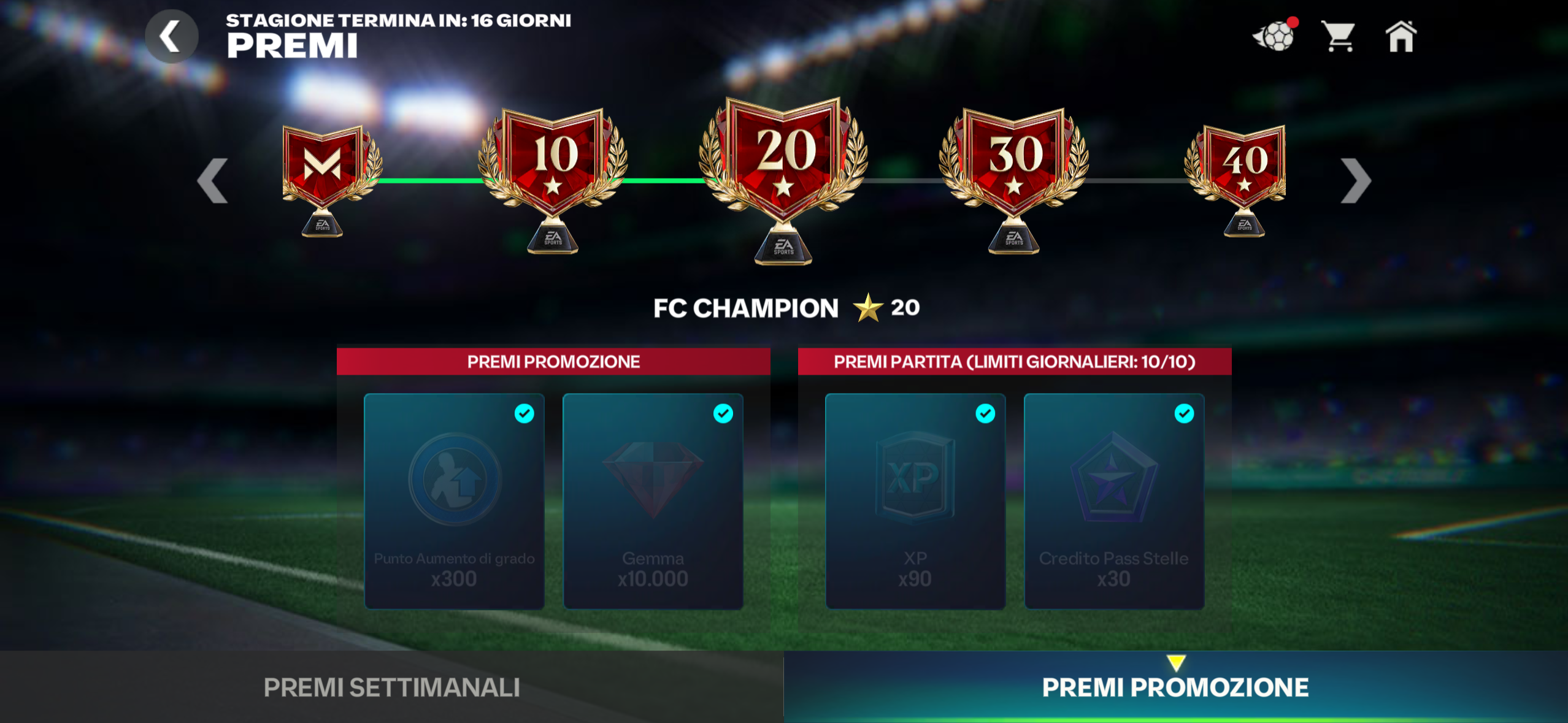 Hello everyone last night I reached 20 stars in coach mode in the Rivals. I started from four stars and arrived 20 consequently I should have received 20,000 gems for the prize 10 stars and the prize 20 star but I only received 10,000.