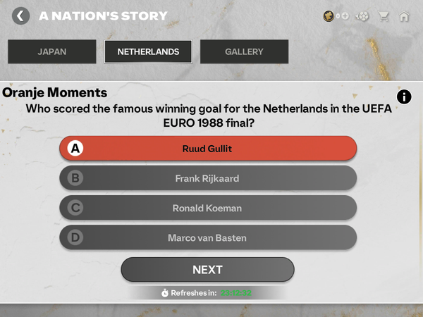 Ruud Gullit scored the first goal in the 1998 EURO Final and, because the match ended 2-0, it was, by any common understanding of the term, the “winning goal.” Yet when I selected this answer it was marked incorrect because, apparently, whoever wrote the question was thinking the Van Basten goal “won” the match. While this goal was indeed iconic it did NOT “win” the match. Anyone who watches sport understands that the game-winning goal/basket/point is the one that puts the victorious team ahead to stay, so this question (which apparently requires Van Basten as the correct answer) is just wrong.