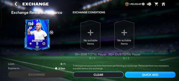 Yep must have 2 x TOTW exchange player :(
