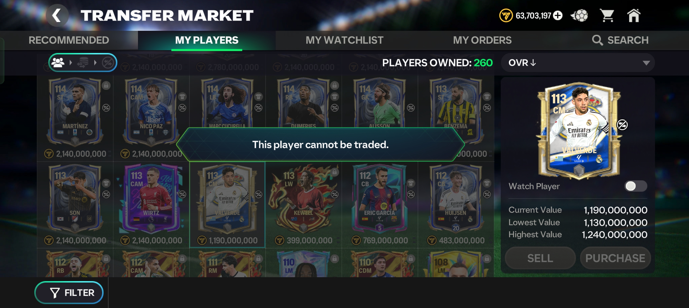 I got a 113 ovr tradable fede Valverde card of glorious era. Then I claimed it and after a few minutes it turns into untradable.
