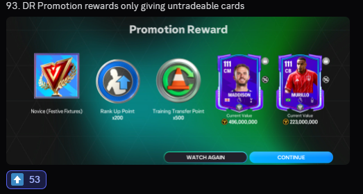Be considerate to other players so their unrelated queries to this bug can be answered promptly.Screenshot from /r/FUTMobile #reported-bugs thread.