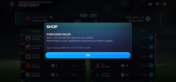 Error Message: Purchase Failed, the last transaction is still being processed.