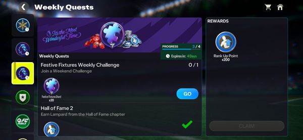 Recent DiscussionsHafta sonu görevi Merhaba hafta sonu görevini tamamlama rağmen ödüllerim verilmedi Hello Hello, I completed the "Weekend Task" in the Festival Fixtures event in FC Mobile 26. The matches were clearly marked as "Weekend". I finished all matches with full 90 minutes and played 3 matc...Weekend Challenge Error Did not receive the weekend mission reward. Festive Features Weekend Challenge Quest not completed As you can see from attachments, I have completed weekend challenge, but quest is not completed. I have completed both yesterday's and today's weekend challenge and still nothing. Please review this ...Weekend Challenge Bug Festive Season Today and yesterday morning i joined and completed weekend challenge but my weekend quest Rewards are still missing