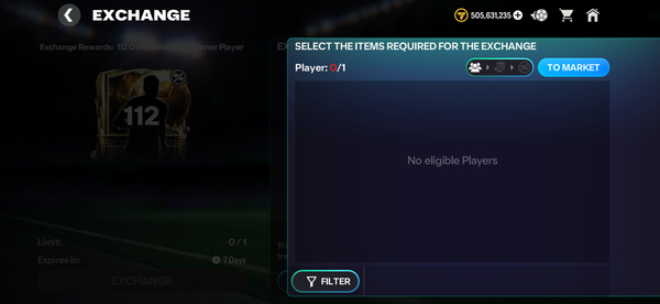 I have an untradable Luis Figo Ballon D'or card (Team B). But I can't exchange it in 112 OVR player exchange. It doesn’t even show in the list. FYI, I am not using this player in any of my squads.