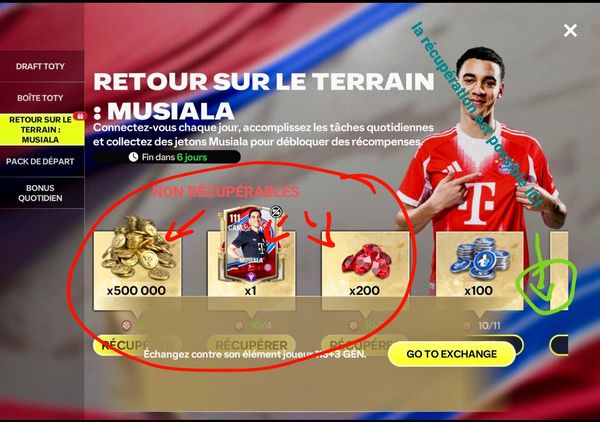 En appuyant sur le haut du bouton "récupérer", il est possible de récupérer les récompenses