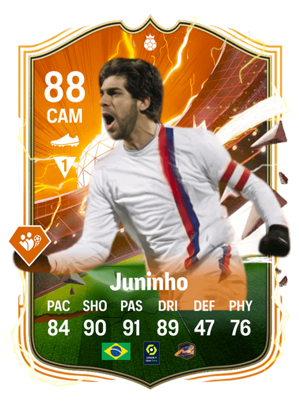 Consideré par beaucoup et par moi même, comme étant le meilleur tireur de coup franc de l'histoire, avec sa frappe nuculaire ou son tir flottant ont marqué toute une génération. Son ajout en tant qu'icone ou héros, serait un énorme clin d'oeil à son talent et apporterai une carte unique au jeu comme se fut le cas avec Oliver Khan. Imaginez marquer un coup franc avec Juninho, ce serait incroyable !!!