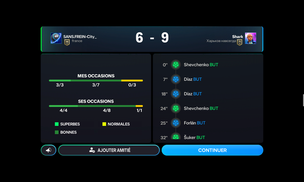 De moins en moins intéressant de jouer au multi attaque dans ce genre de conditions, contre de tels adversaires avec des défenseurs et gardien ultra performant qui chope tous , sont partout a 3 sur t empêchant toute possibilité de jeu tu es littéralement bloqué de toute part et quand tu as la chance d être démarquer tu es hors final aucun jeu possible. Victoire acquise facile pour l adversaire juste a marqué de son côté étant donné que l IA fait tous pour lui. Plus aucun intérêt de jouer faire des matchs contre de tels adversaires pour ne pas pouvoir jouer plus rien d intéressant, de jouable , d équitable dans le multi attaque sans parler des tricheurs qui sont de plus en plus fréquent.