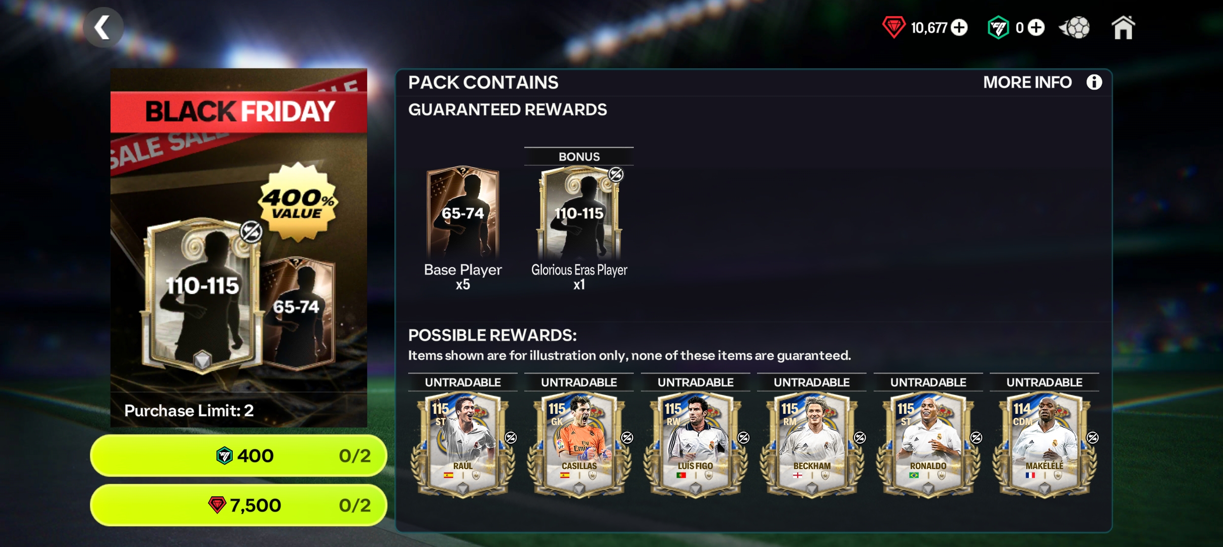 Reg the 7.5kgrms/500FC points pack: There is a pack already with the same rewards and probabilities titled Limited Bundle Pro but EA just labelled the same pack as Black Friday pack and saying it's 400pc value.