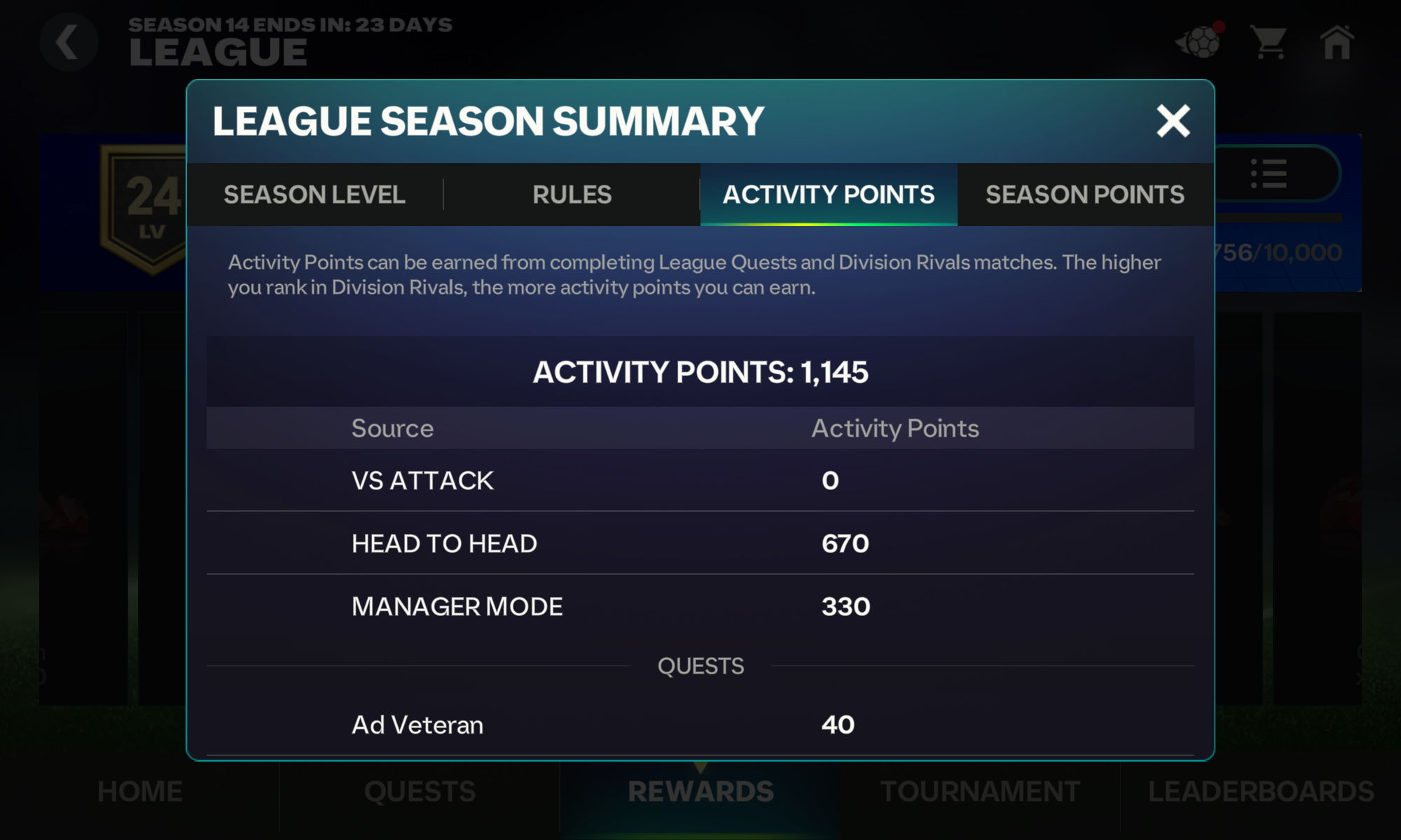My VSA activity points are not being counted even though my season points are. I have played more than 5 matches everyday after joining the new league.