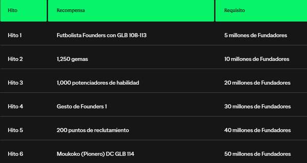 Los hitos se desbloquean progresivamente a medida que más personas se conviertan en Founders.