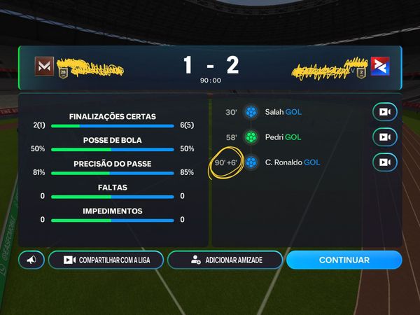 O gol foi contabilizado em 90+6. Ou seja, o jogo corre até o gol acontecer. Já tomei gol nos 90+1 que na verdade eram 90+8