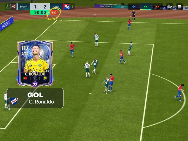 O exemplo abaixo é uma constante: Acréscimo de +3, gol nos acréscimos.