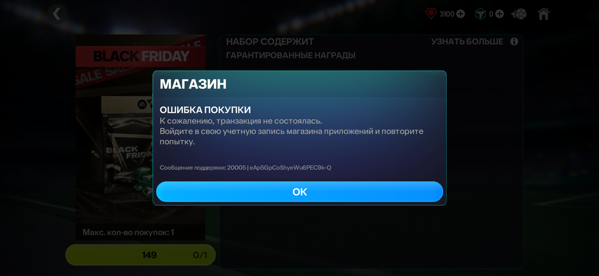 Здравствуйте, EA нажимаю купить акцию а выдает К содержанию транзакция не состоялась . Войдите в свою учетную запись магазина приложений и повторите покупку
