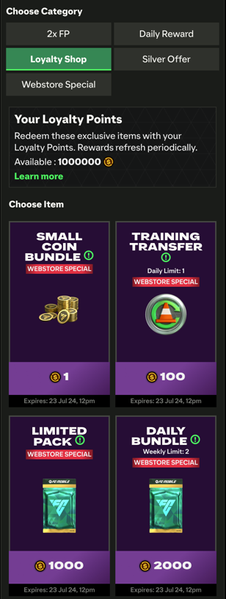 Esplora una gamma di prodotti come FC Points, Silver e bundle speciali del Webstore, oltre a sconti entusiasmanti ed eventi bonus disponibili solo sul Webstore.