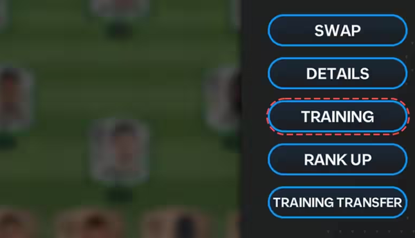 Aby przenieść treningowe PD na kartę piłkarską, wybierz kartę, którą chcesz trenować i wybierz opcję Trening. Jeśli twoja karta nie jest w składzie ani na rynku transferowym, będzie tam widoczna. Użycie karty rezerwowej do treningu spowoduje usunięcie jej z klubu.
