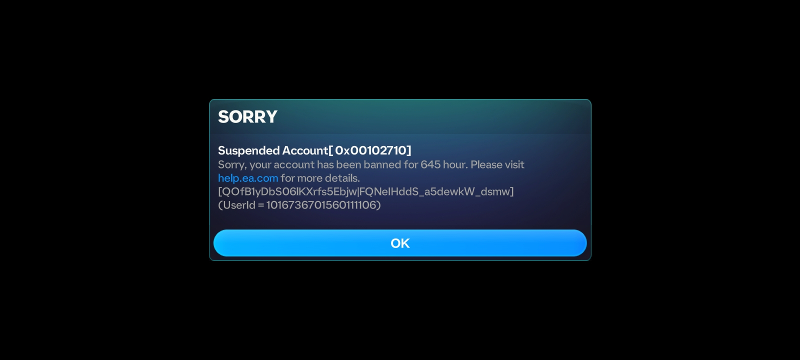 I am writing to request a review of my EA account, which has been suspended yesterday with the error code 0x00102710.