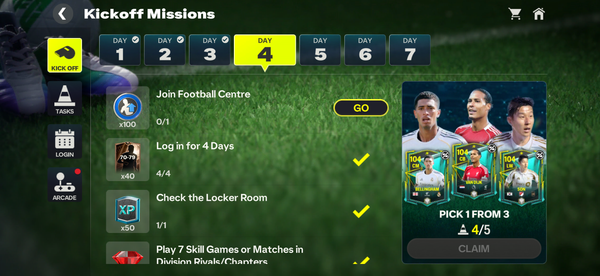 For the kickoff rewards on day four, in order to get the total rewards, you have to complete tasks and one of them is to join a football center. I don’t see football center anywhere and even when I tried to join a league it didn’t work.