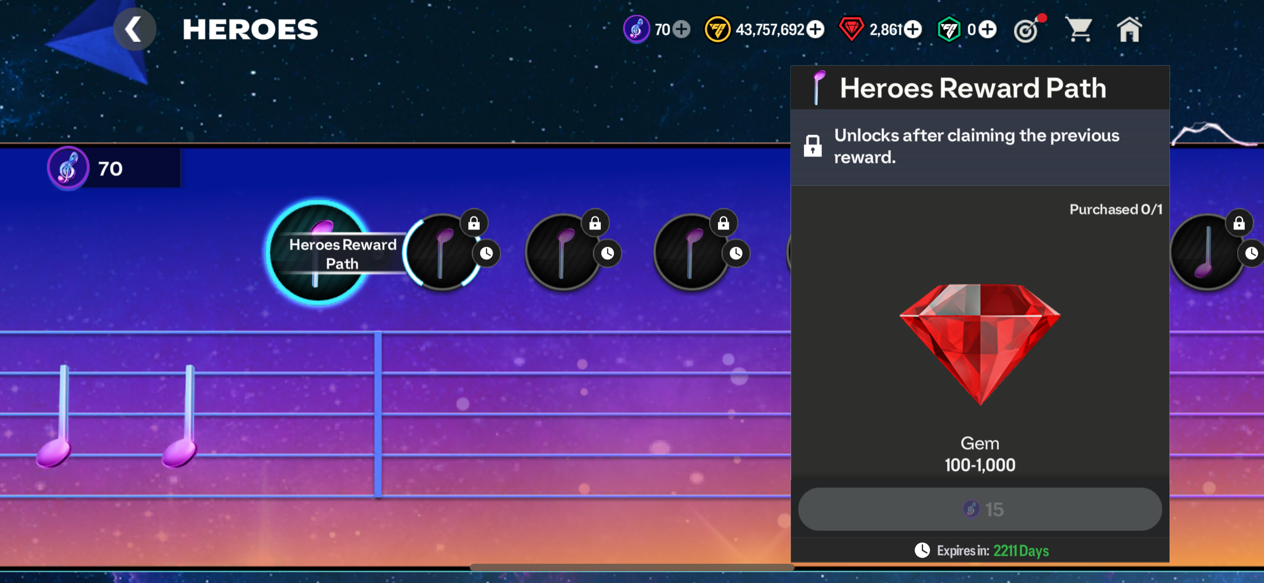 @7591097850560880 Considering you still have 70 tokens left you seem to only have purchased the first three notes. If you get the glowing one the note is pushed down and you can open the next one.