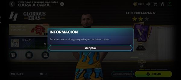 Le he dado a jugar y me salía que estaba buscando rival un buen rato, le he dado a cancelar y luego le he dado otra vez a jugar y me ha salido este error.