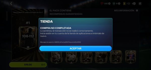 Hice la compra de 2 packs con dinero real y hasta el momento no me dejan reclamarla solo dice que error en la compra que aun se está procesando mi compra que para evitar que se me cobre 2 veces no lo vuelva a comprar pero no me dan lo que compre y tampoco me han contestado en la asistencia de EA los contacte y solo dijeron que me contactarian con un asesor, cosa que jamas hicieron, y he mandado mensaje y no contestan mande capturas de el comprobante de pago, el correo donde aparece que el pago fue exitoso quiero aclarar que ya van hacer 24 horas de todo esto y hasta el momento me sigue apareciedo error