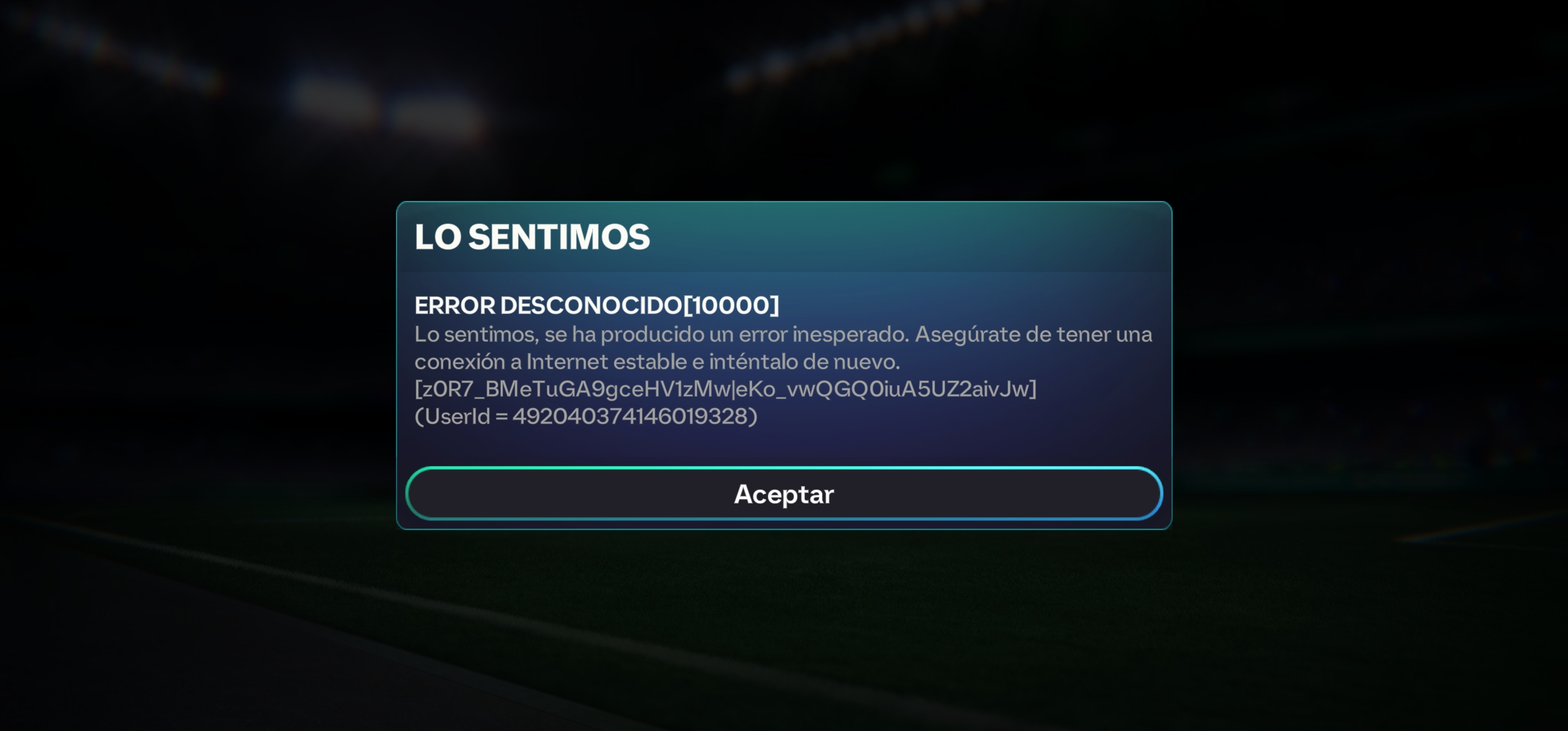 Fc mobile, no puedo unirme a ninguna liga.  Me aparece error desconocido [10000] y no puedo unirme a ninguna resuelva su error por favor