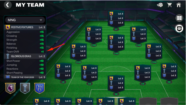 Tenho o emblema da Premier league no nível máximo, onde o emblema afirma aumentar 1 ponto de overall do time. No meu caso não está aumentando, meu time está 120 sem o emblema, e quando coloco e ativo o emblema, continua com 120. Onde está esse ponto que o emblema afirma aumentar ????