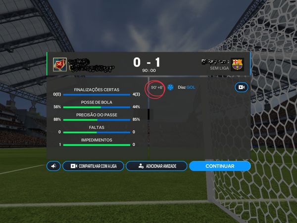2) O tempo dado de acréscimo não corresponde ao que aparece na tela do jogo: