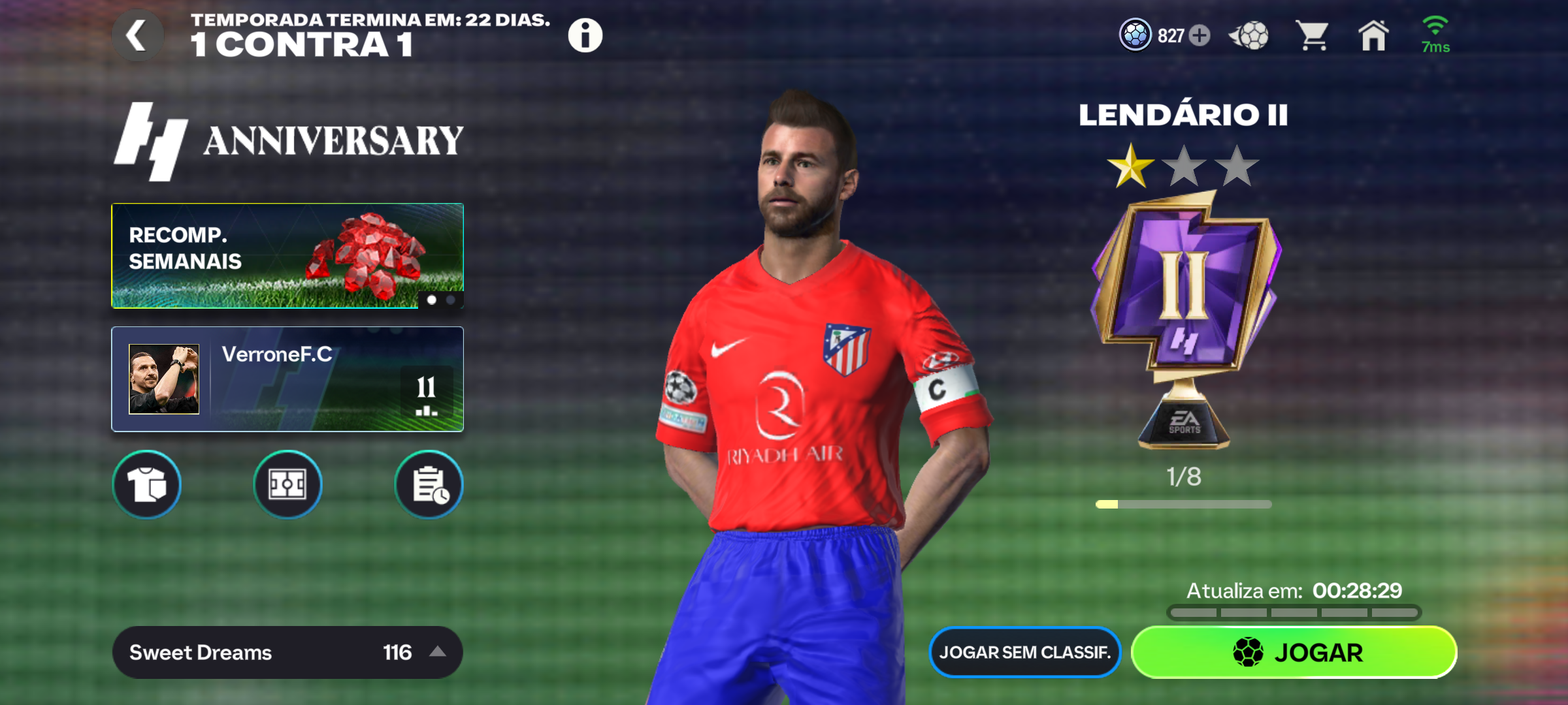 Vou estar disponibilizando 2 anexos de screenshot's da minha conta, um que estará mostrando a quantidade de "escudo de estrela" que minha conta tem em posse até o momento desta publicação, e o outro anexo demonstrando que não tenho eles disponível para o uso no modo de jogo "1 contra 1".