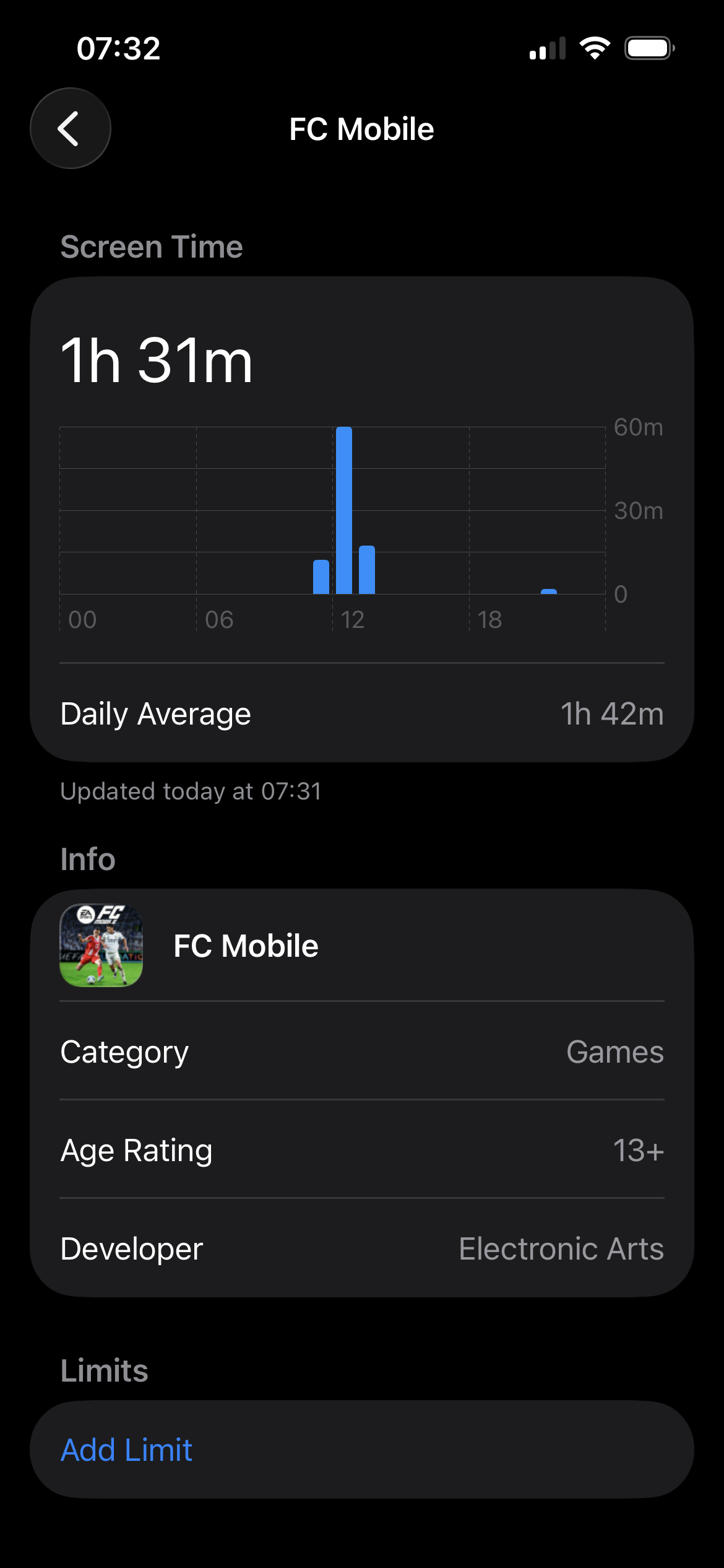 В день перед сбросом я заходил в игру как обычно и проводил в ней время. Это подтверждается статистикой экранного времени на моём устройстве.