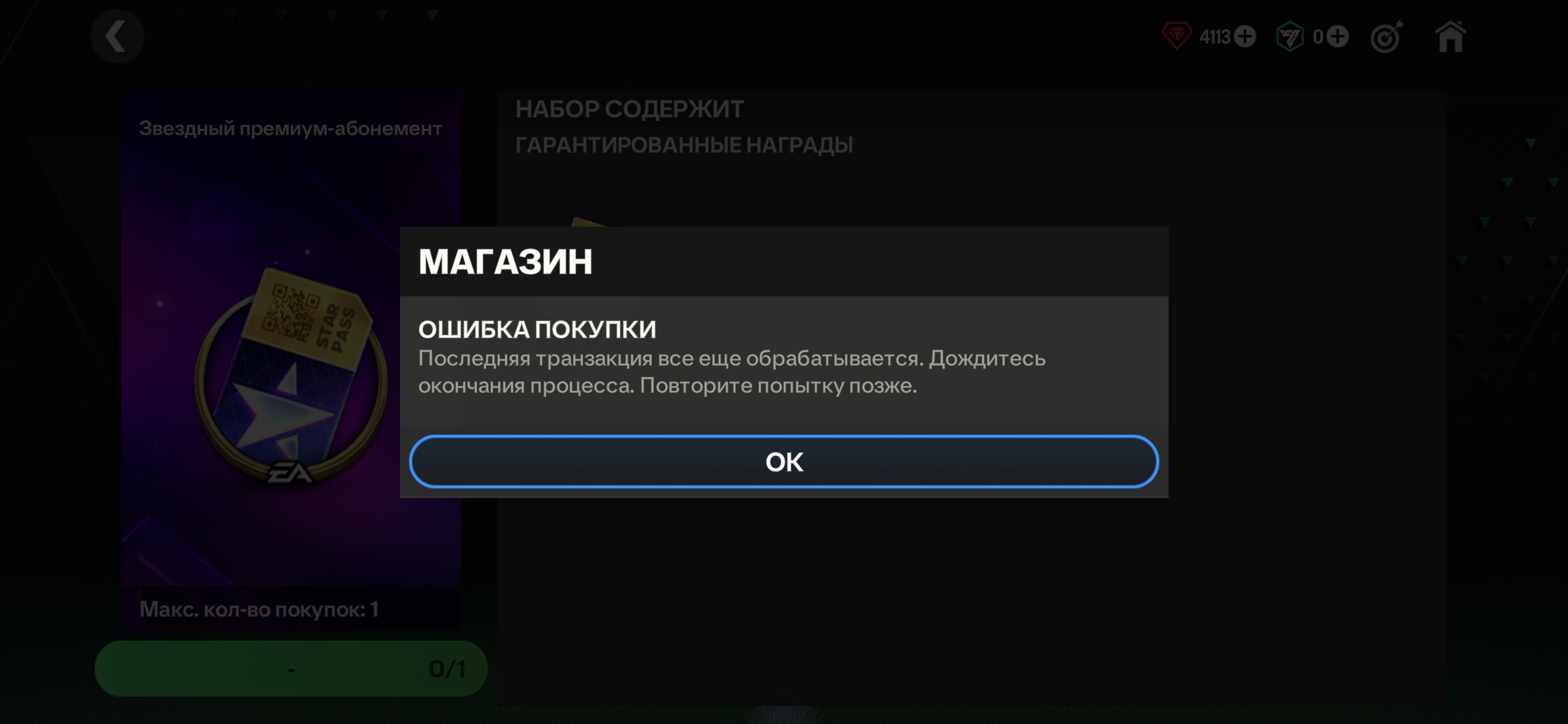 Я купил звездный абонент у меня сняли денги но говорит обновляется транзакция но потом пишет заново купите в учетном записи