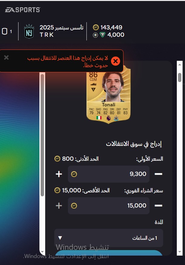 مشكلتي أنني لم أتمكن من البيع في سوق النقل منذ إكمال المهمات، باستثناء مهمة "إتقان السوق". يمكنني الشراء فورا. في كل مرة أذهب فيها إلى سوق التحويلات، تظهر لي رسالة "خطأ في الخادم". سئمت من هذا الوضع لأنني كنت أشتكي منه تقريبا منذ بداية اللعبة.