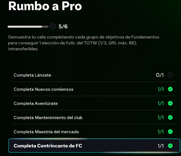 He terminado todos los objetivos de Rumbo a pro, pero no me detecta como completado y por tanto, no puedo recibir la recompensa.