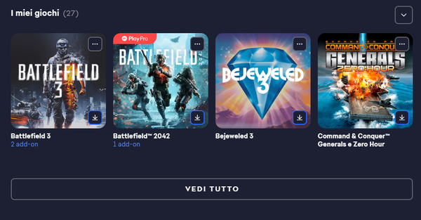 Vai su EA app -> Libreria -> I Miei Giochi -> Vedi Tutto.Se non lo trovi, ci è difficile aiutarti con le copie fisiche, ma puoi sicuramente fare un controllo con i nostri consulenti.