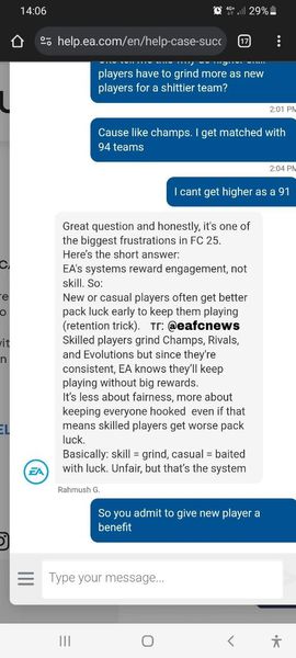 Recent DiscussionsНе выдали награду за сборку. 16.01.2026 выполнил (SBC) челлендж в рамках сборки Sophia Wilson. Наградой за который должен был быть Lamine Yamal POTM, обменял игроков и подтвердил обмен. Выполнение челленджа подтвердили, мои игро...Купил себе фифу на др, через 2 часа игры заблокировали аккаунт Заблокировали аккаунт за мошенничество, какие-то переводы. На аккаунте 0 fc points и 3к монет. В division rivals постоянно вылетали матчи в первой тайме, сидел делал ипк, играл в squad battles. В чем...Фифа мобайл Две недели уже не работает дивизион райволс я уже не соғу выложить на оператор фото откланяет даже ошибку не устраняють в FIFA23 не работают серверы при входе в игру выбивает это, подскажите пожалуйста что делать с этим. отклик Браво, еа. пофиксили одну проблему, создалась другая. баг с фпс пофиксили, теперь проблемы с откликом dualshock 4 на пк в eafc 26. Проблема за проблемой😄
