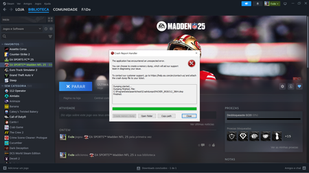 Today I started Madden 25 and the Crash Report Handler appeared, I tried uninstalling the game, uninstalling the EA app, running the game as administrator and nothing worked, please help me.