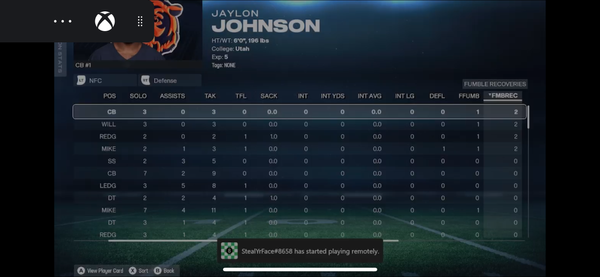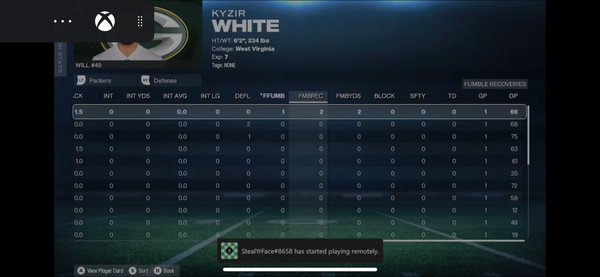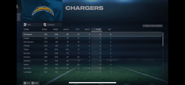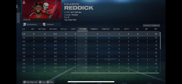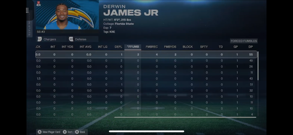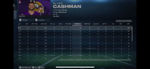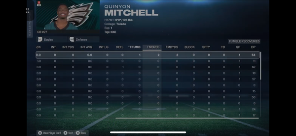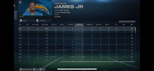 2. Fumble recoveries will only be given to players in multiples of 2. (I.e. if a player ACTUALLY had 1 fumble recovery, they will be given 2.) I know this because of the following images, If you simulate the first week of the season, there will not be a single player with 1 fumble recovery. There will only be players with multiples of 2.
